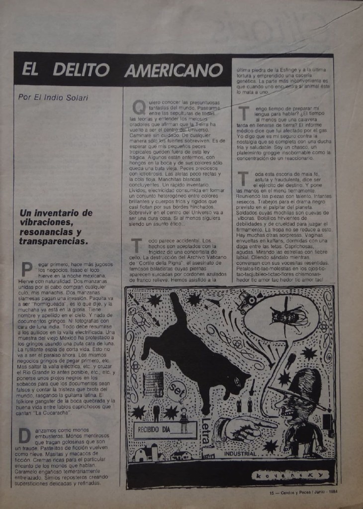 Autor: Indio Solari. Revista Cerdos & Peces #3, junio de 1984. Digitalización: AHIRA (Archivo Histórico de Revistas Argentinas)