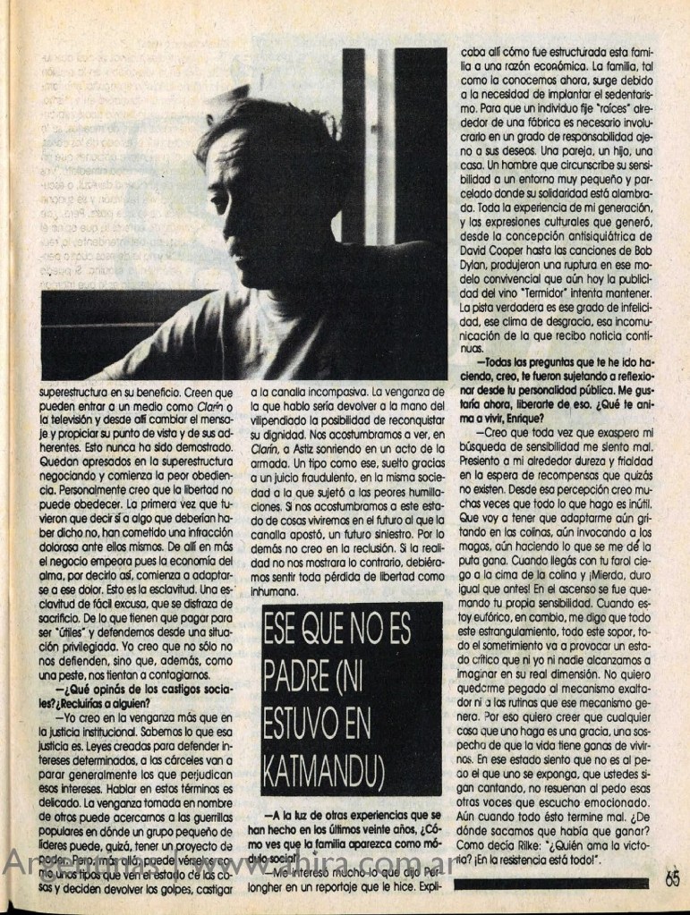 Revista Fin de Siglo #13. Julio de 1988. Entrevista a Enrique Symns, realizada por Indio Solari