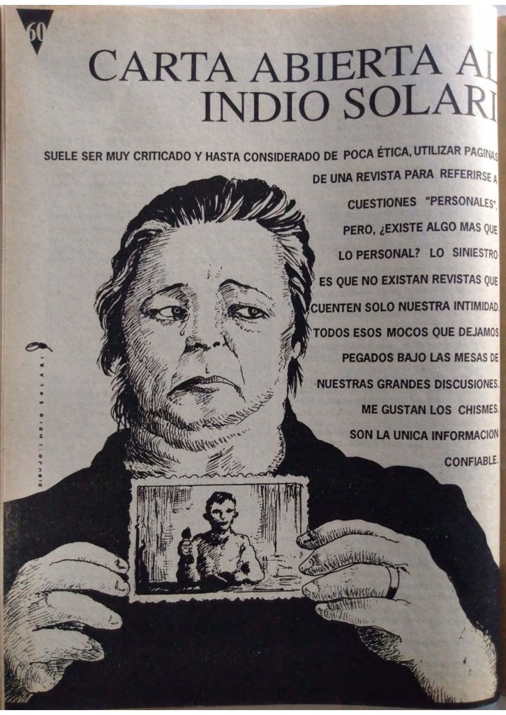 Suele ser muy criticado y hasta considerado de poca ética utilizar páginas de una revista para referirse a cuestiones «personales». Pero ¿existe algo más que lo personal? Lo siniestro es que no existan revistas que cuenten solo nuestra intimidad. Todos esos mocos que dejamos pegados bajo las mesas de nuestras grandes discusiones. Me gustan los chismes. Son la única información confiable.