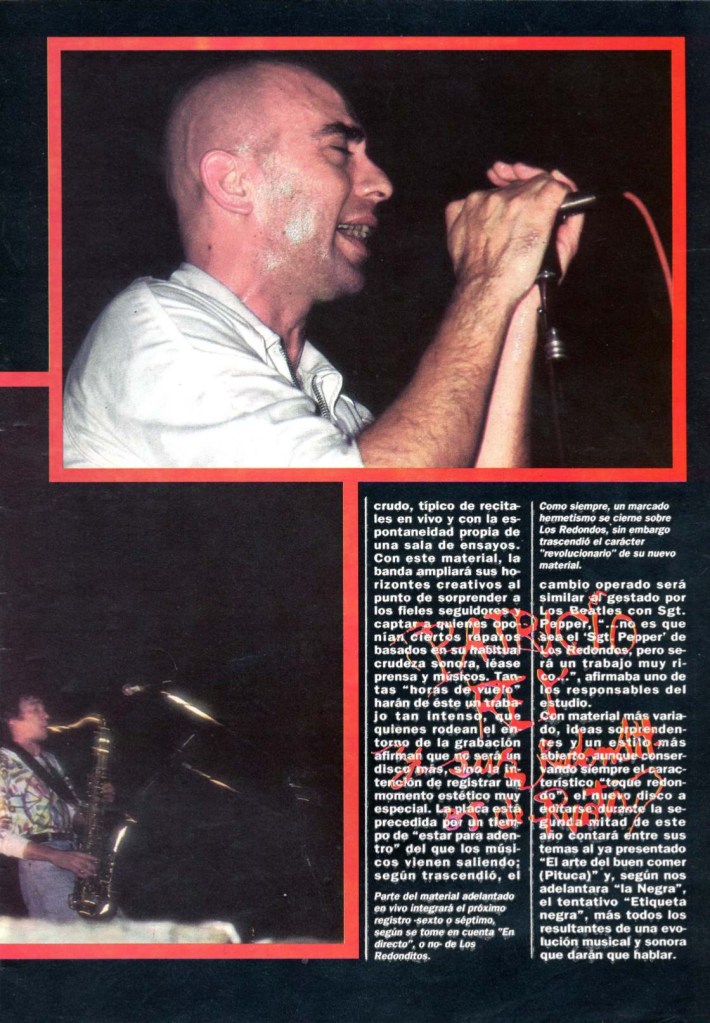 Durante el pasado mes de diciembre, mientras Seru Giran registraba la producción de su reencuentro, Los Redondos se instalaron en Del Cielito para darle los últimos «toques» a los demos de este material, sin duda el más exigido, pulido y cuidado hasta el momento. Patricio Rey y sus Redonditos de Ricota nos tenían acostumbrados a discos directos, con sonido muy crudo, típico de recitales en vivo y con la espontaneidad propia de una sala de ensayos. Con este material, la banda ampliará sus horizontes creativos al punto de sorprender a fieles seguidores y captar a quienes oponían ciertos reparos basados en su habitual crudeza sonora, léase prensa y músicos. Tantas «horas de vuelo» harán de éste un trabajo tan intenso, que quienes rodean el entorno de la grabación afirman que no serpa un disco más, sino la intención de registrar un momento estético muy especial. La placa está precedida por un tiempo de «estar para adentro» del que los músicos vienen saliendo; según trascendió, el cambio operado será similar al gestado por Los Beatles con Sgt Pepper «… no es que sea el Sgt Pepper de Los Redondos, pero será un trabajo muy rico…» afirmaba uno de los responsables del estudio.