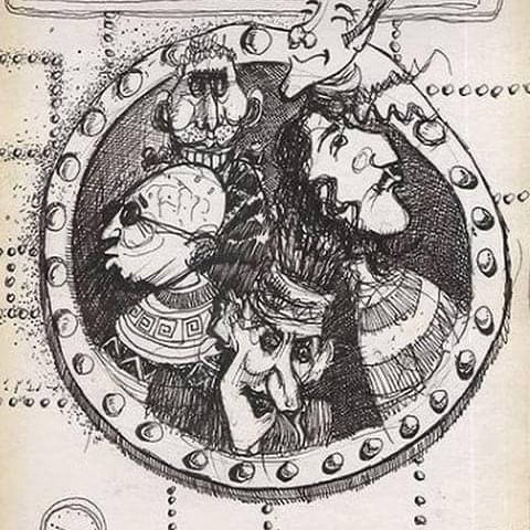 El caso de Los Redondos es muy particular. Soy amigo de ellos antes de que fueran los redondos, antes de antes, así que tenemos una relación muy estrecha, muy intensa. Los trabajos con ellos no se proponen secuencialmente, primero la música después la poesía y finalmente la gráfica. Se hace en paralelo, la única propuesta que hay al principio es “vamos a hacer un trabajo”, veamos a quien se le ocurre algo, hay por ahí una historia básica donde se especula tirando ideas tipo “brain storming”, la tormenta cerebral. Y a partir de ahí todos trabajan en paralelo, la música se sigue haciendo, la poesía y la gráfica, en base a una idea general. Cuando sentimos que la cosa está “redonda”, la juntamos, la pegoteamos y echamos todo al puchero.