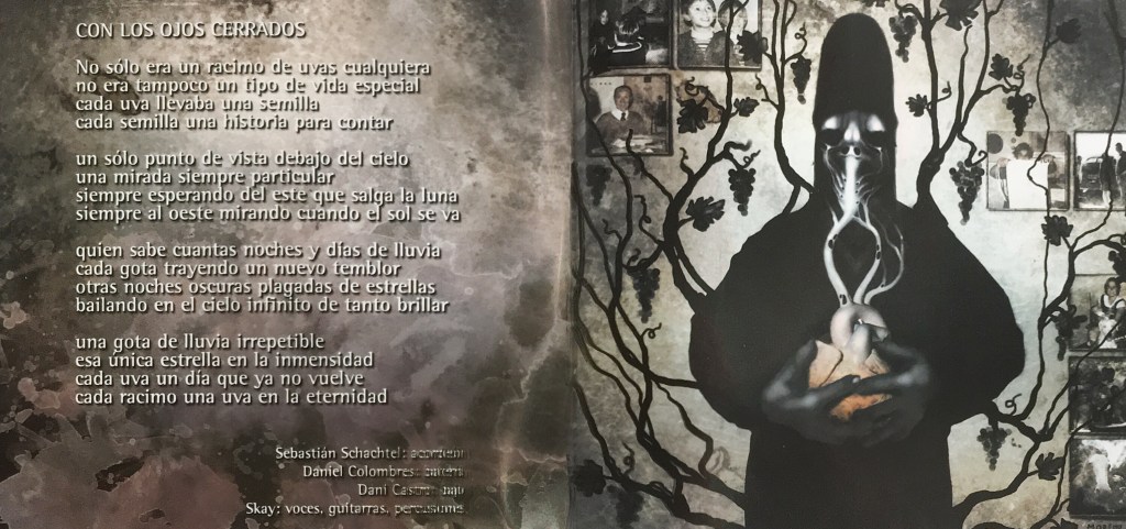 Hay un panorama inicial que presenta un mundo vagamente futurista, acosado por todo tipo de catástrofes-humanas y naturales-, y con las líneas divisorias entre el bien y el mal, lo mítico y lo terreno, difusas hasta el punto de lo indescifrable. Hay viajes y desafíos, con abundante imaginería marina-tormentas, cielos nocturnos, barcos y canoas-, y un final donde el protagonista es dueño de su destino, dispuesto a emprender un nuevo camino. O algo así. Esto puede ser una sorpresa para quienes no imaginaban al guitarrista fuera del ámbito de su banda de siempre: aquí Beilinson pasa al frente también como letrista y cantante, con notables resultados. Sus letras, sin ser tan herméticas como algunas de Solari, recurren a la metáfora y al enigma para crear paisajes de gran poder evocativo; como cantante, Skay asume una función casi teatral: su voz aparece procesada y distorsionada, susurrada, operística, o directa y sincera, según los requerimientos del tema.