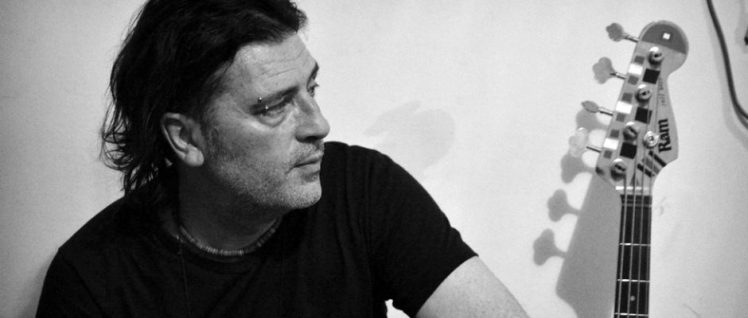 El ex bajista de Los Redondos inauguró, en silencio, su muestra «Curiosidades diversas», y después se puso a trabajar sobre una plaqueta digital que proyectó sus trazos en una pantalla gigante. Todo mientras tocaba una banda. Una experiencia para repetir.