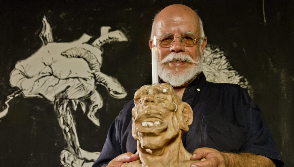 El mítico ilustrador de las tapas ricoteras estuvo nueve años sin exponer en su ciudad, desde que robaron su Luzbelito. La obra reapareció y Rocambole decidió montar allí otra muestra.