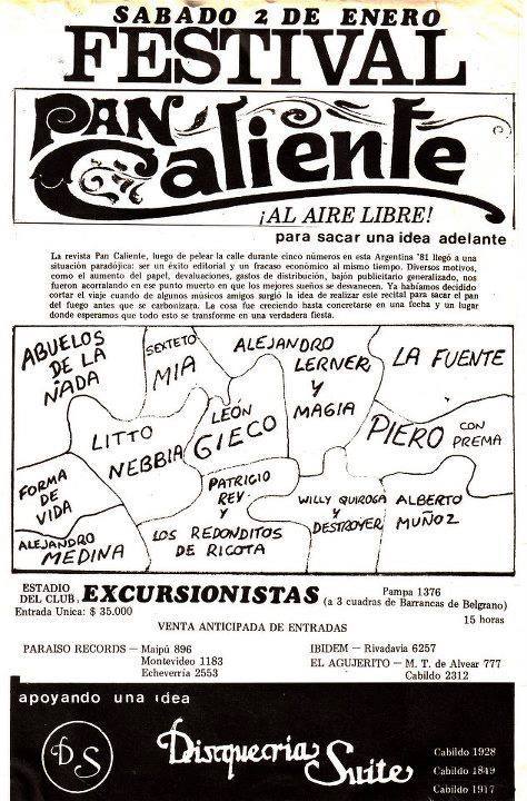 La historia me la acuerdo más o menos así: Jorge Pistocchi, un periodista del Expreso Imaginario, sacaba una revista llamada Pan Caliente. Gran revista: Egberto Gismonti, ecología, anarcos alemanes, como hacer pan casero, los rolling stones, la poesía de Ginsberg. Yo la compraba.