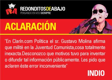 «En Clarin.com Política el Sr Gustavo Molina afirma que milité en la Juventud Comunista, cosa totalmente inexacta. Desconozco qué motivos tuvo para inventar o difundir tal información públicamente. Les pido que aclaren este error inconveniente».