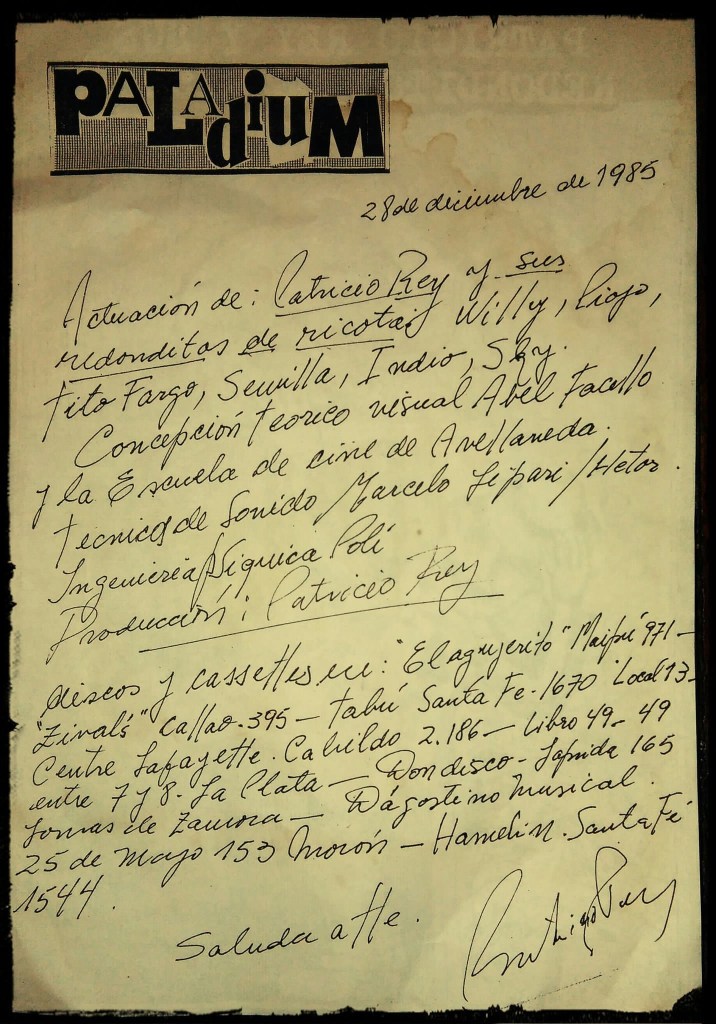 Lo cierto es que ese martes 28 de diciembre de 1982, ya en el ocaso de la dictadura militar, Patricio Rey se iba a presentar en el Teatro Bambalinas para desplegar esa maquinaria alocada y frenética del rock and roll show.