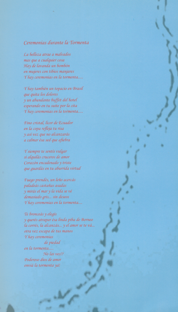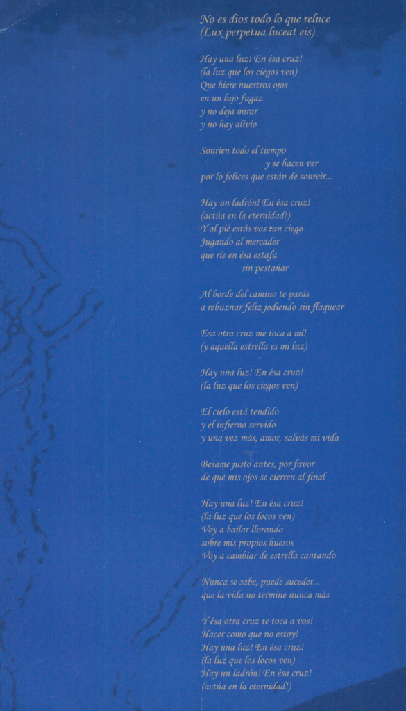 «Nubes que son sospechas (mientras me llegan perfumes de la tempestad) ¿Las ves?». Con esas palabras el Indio cierra su tercer disco solista. Casi un resumen perfecto de la atmósfera oscura y pesimista que rodea este álbum.