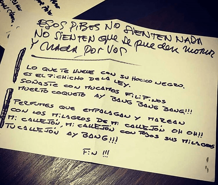 Letra original manuscrita por Indio Solari