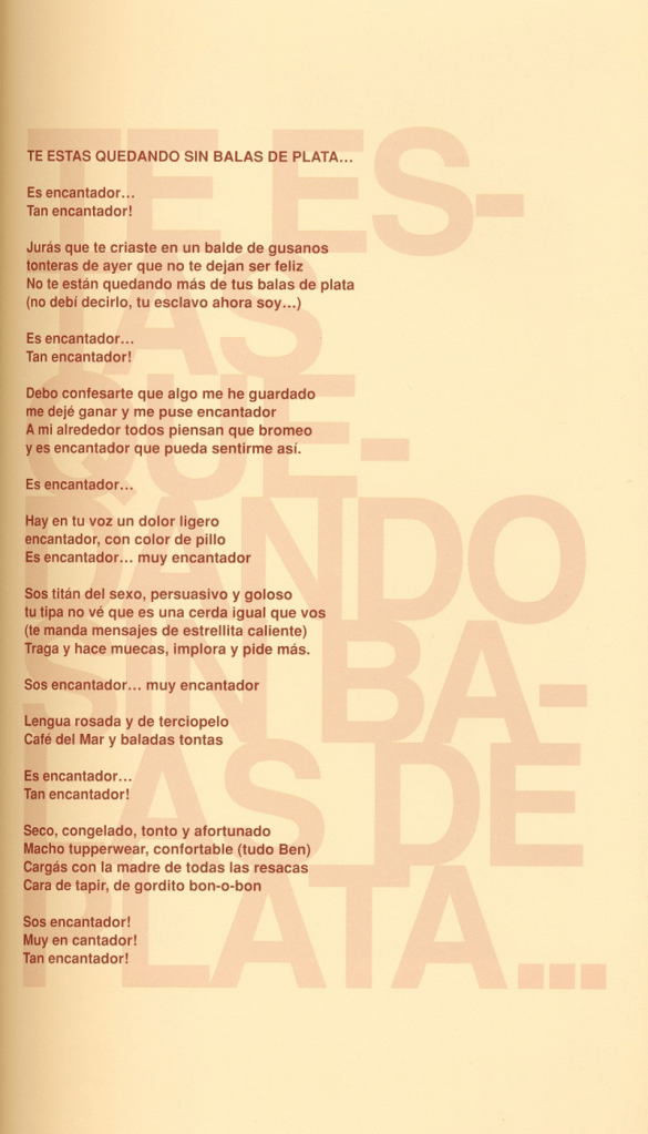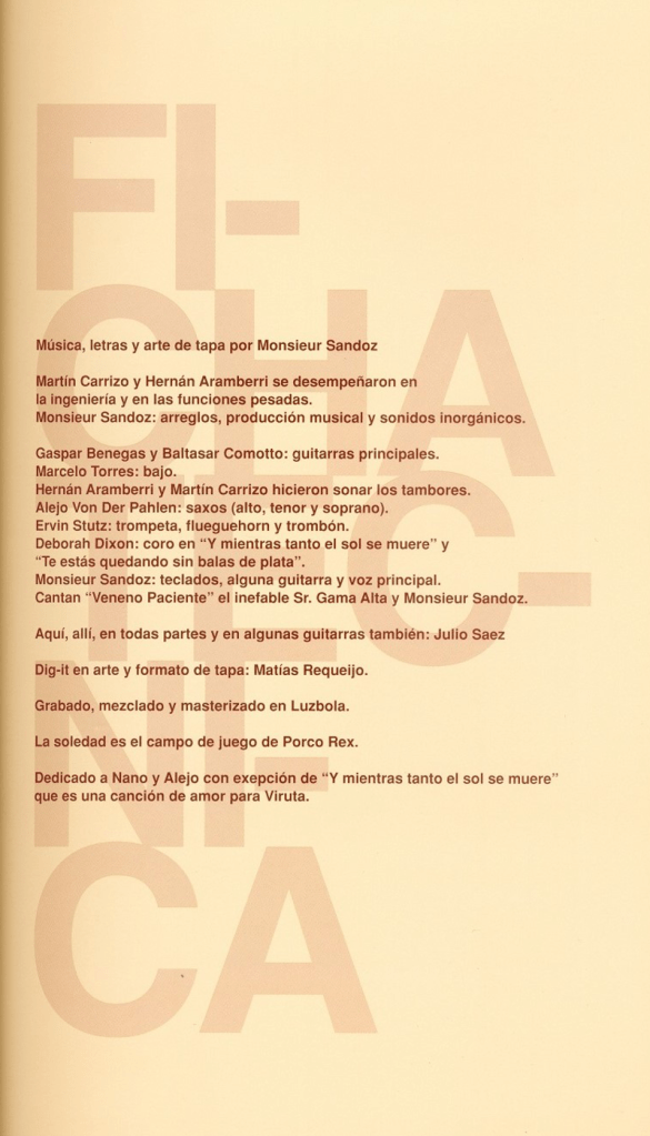 No parece ser una casualidad, tampoco, que todo el disco tenga un carácter muy autorreferencial. De hecho una de las canciones (Y mientras tanto el sol se muere) se la dedicó a su esposa Virginia. La mayoría de las líricas están escritas en primera persona y en varias parece sobrevolar el conflicto con sus ex socios Redondos, bastante vigente por aquel entonces. En las entrevistas el Indio aclaró que el disco gira alrededor de la “muerte, el amor, el deseo y la traición”.