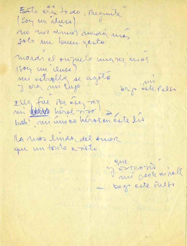 Durante la exposición que brindó en el año 2015 en la Biblioteca Nacional, Indio Solari por primera vez mostró algunos de los manuscritos originales de sus letras. Son tesoros invaluables que nos permiten descubrir el proceso creativo, y algunas de las modificaciones que les realizó a las canciones.