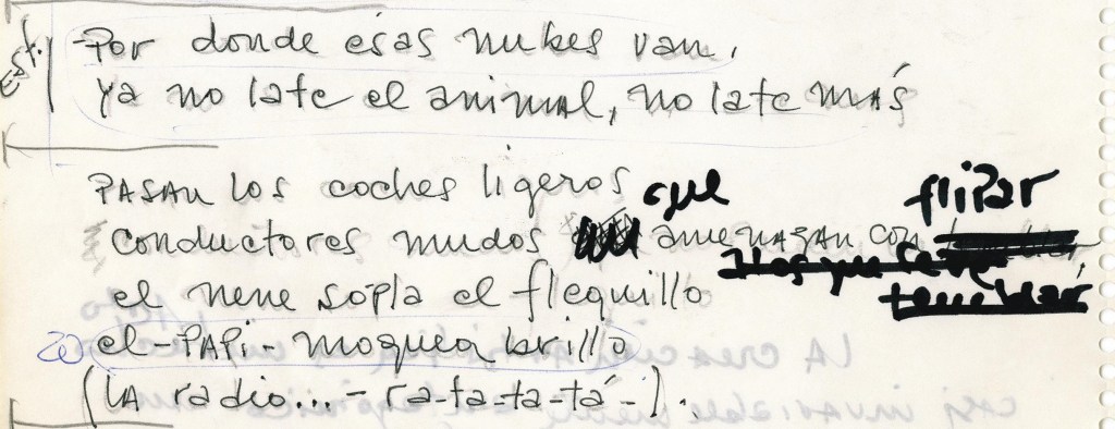 Durante la exposición que brindó en el año 2015 en la Biblioteca Nacional, Indio Solari por primera vez mostró algunos de los manuscritos originales de sus letras. Son tesoros invaluables que nos permiten descubrir el proceso creativo, y algunas de las modificaciones que les realizó a las canciones.