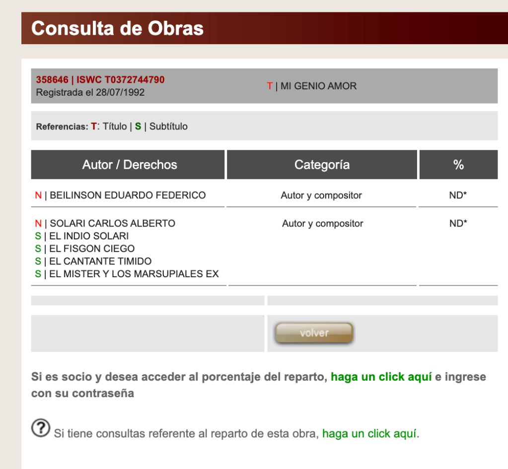 Con respecto a la autoría de esta canción existe cierta polémica. En Sadaic el tema está registrado desde el año 1992 a nombre de Carlos Solari y Eduardo Beilinson.