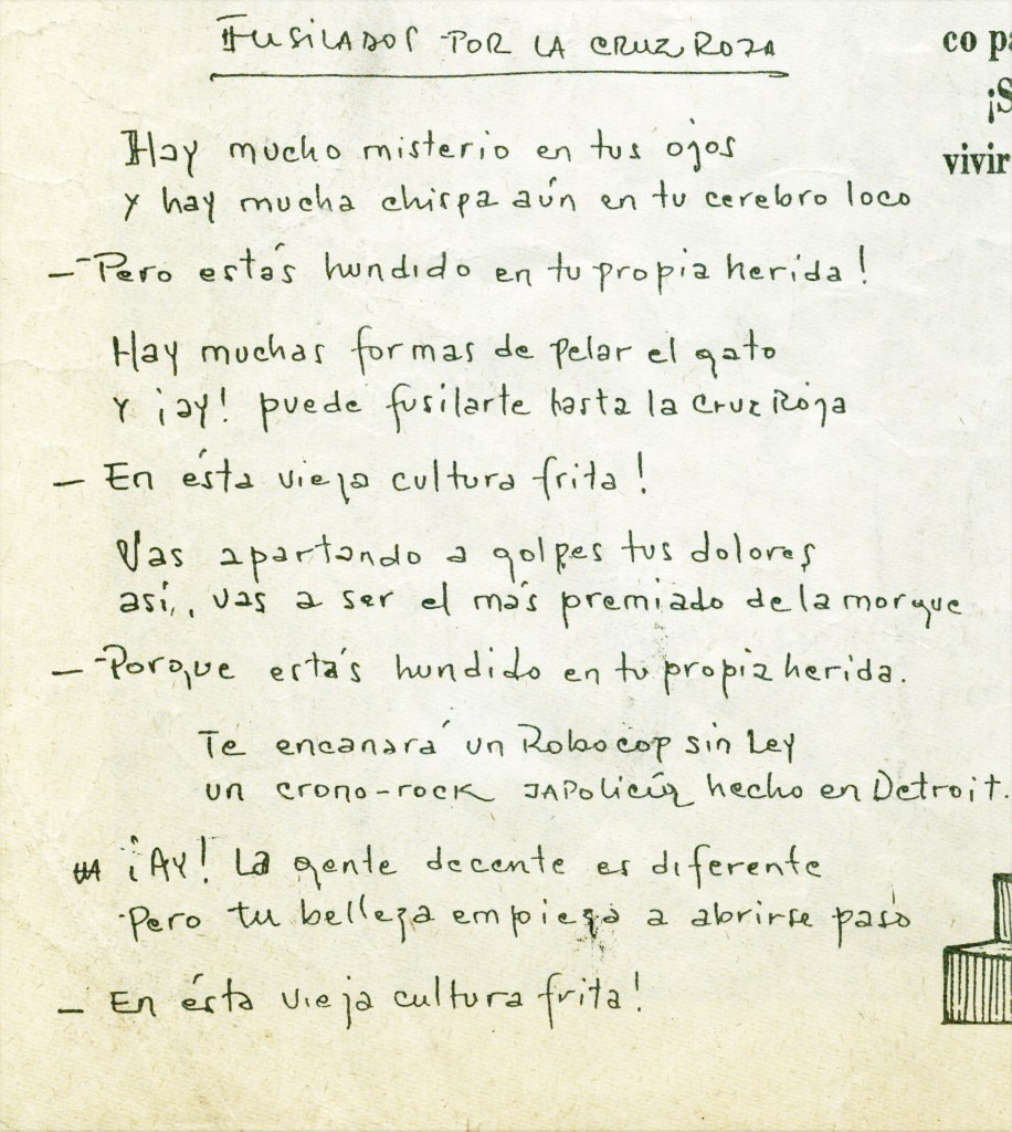 Antes de un show en Obras Los Redondos repartieron un folleto que incluía las letras de las canciones de «La mosca y la sopa».