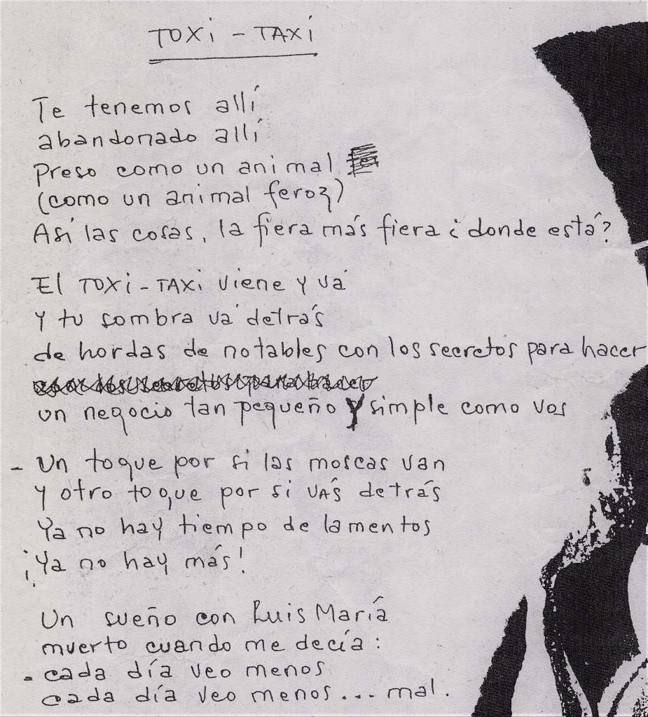 Luis María me cantaba una canción que decía: Cada día veo menos… Cada día veo menos… Cada día veo menos… mal. Y eso fue lo que recogí en la letra.