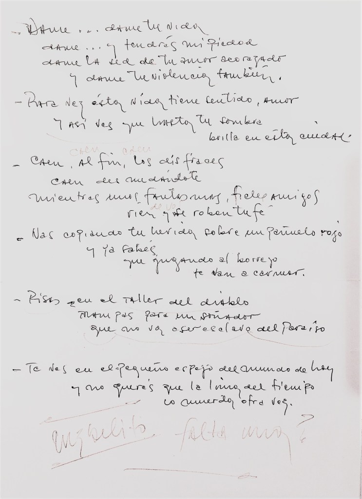 Durante la exposición que brindó en el año 2015 en la Biblioteca Nacional, Indio Solari por primera vez mostró algunos de los manuscritos originales de sus letras. Son tesoros invaluables que nos permiten descubrir el proceso creativo, y algunas de las modificaciones que les realizó a las canciones.